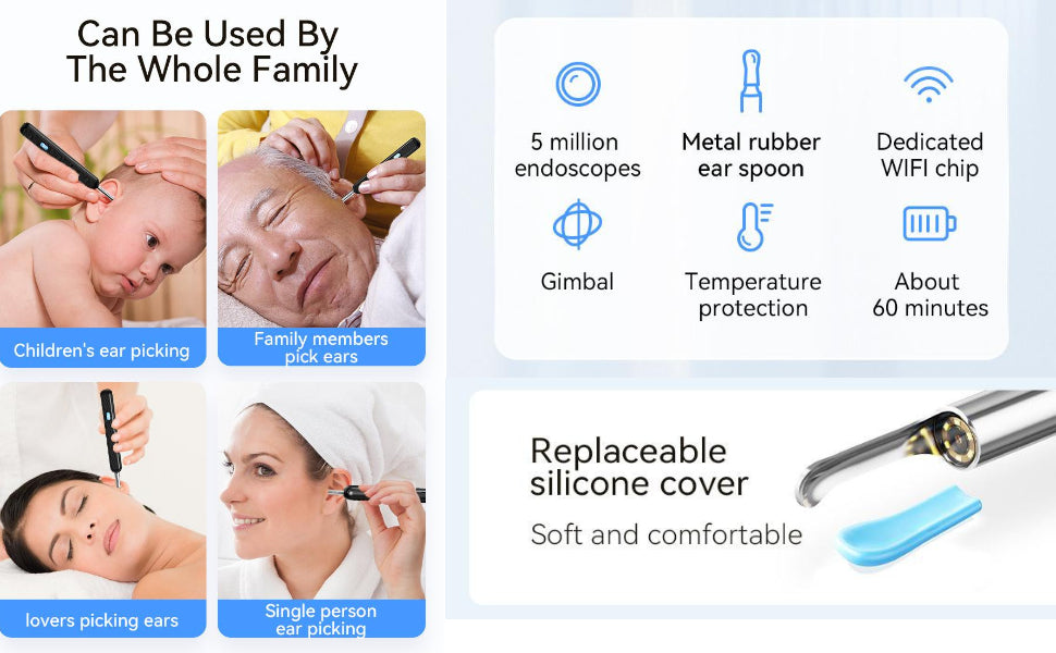 Not limited to ear cleaning—use it to examine your skin, nose, teeth, and more, making it a versatile tool for the whole family.