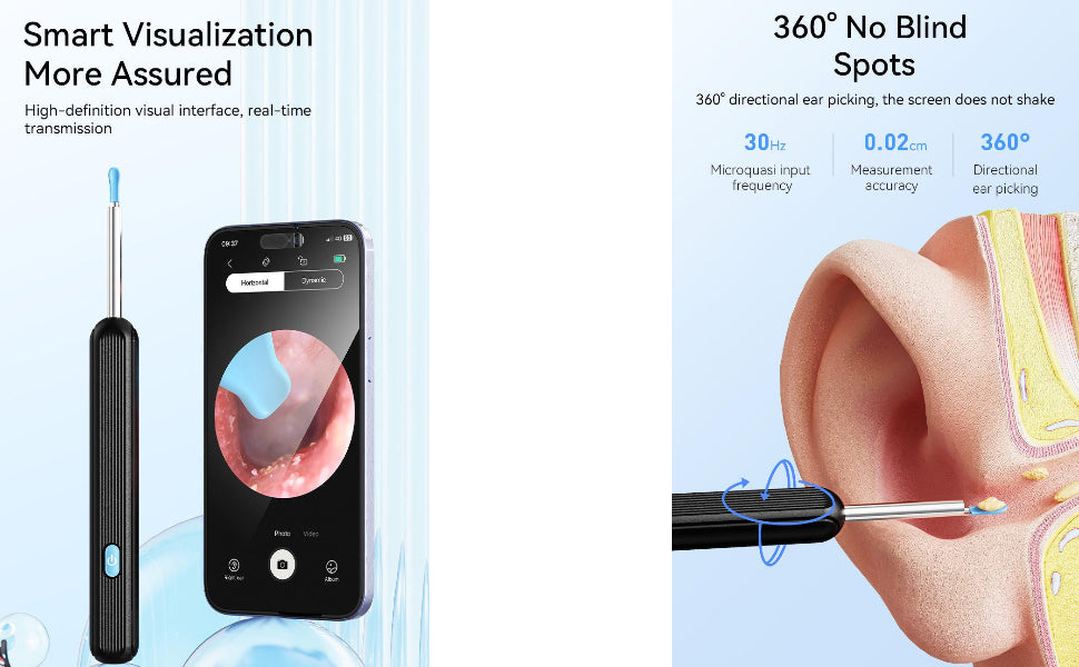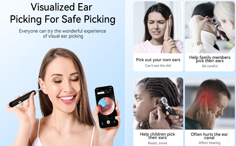 Equipped with a 1920P HD camera, 360° wide-angle lens, and 6 LED lights to give you a clear, well-lit view of your ear canal like never before.